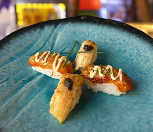 Para los paladares más exigentes y por un precio extra, ofrecen además una carta aparte de Recomendaciones del Chef en la que proponen una selección de Nigiris (atún, vieira, foie…) y tres Mini Tartares (de salmón, pez mantequilla o atún).