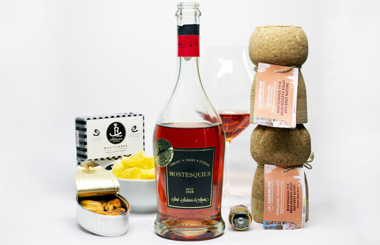 La propuesta especial se basa en la unión del Montesquius Rosado Gran Reserva 2009 y los Mejillones fritos marinados en escabeche de Real Conservera Española, de las Rías Gallegas. Éstos últimos previamente cocidos y fritos en aceite de oliva, se presentan, debido a su gran tamaño, en 6/7 piezas por lata, acompañándose de un escabeche elaborado con aceite de oliva y productos naturales. Poseen una textura firme y uniforme por la fritura (no se rompe al cogerlo), con un líquido de cobertura bien ligado. De un color anaranjado y sabor muy potente y delicioso, están elaborados en un escabeche especial compuesto de aceite de oliva, vinagre, pimentón dulce y ahumado, ajo, clavo, pimienta y laurel.