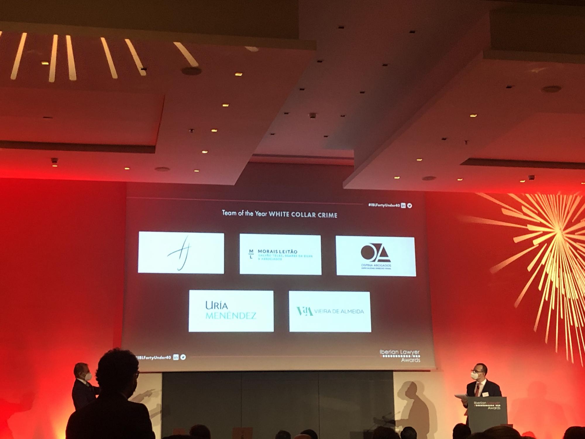 Ospina Abogados recibió el premio en la categoría de penal económico a la mejor práctica jurídica del año 2020. Con este premio Ospina Abogados consolida su crecimiento siendo premiado durante dos años consecutivos habiendo recibido en 2019 el galardón al mejor despacho de abogados penalistas en penal económico para menores de 40 años.