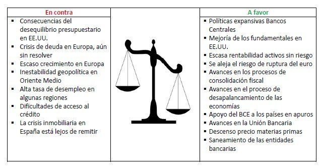 La situación en EE.UU. ha mejorado sustancialmente y se deja ver en algunos de los principales aspectos de la economía: la tasa de paro ha descendido hasta el 7,7% y los últimos datos del mercado inmobiliario nos invitan a pensar en su estabilización. Si continúa la recuperación del sector de la vivienda será un importante apoyo para que la mejoría del empleo continúe y se entraría en un círculo “virtuoso” muy positivo para la economía. Otro factor de apoyo vendrá de la mano de los emergentes, que están saliendo también de su etapa de letargo.