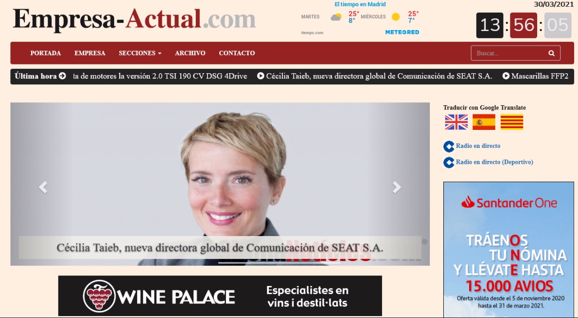 El Grupo GN, dirigido por Xavier Palomino, cuenta desde esta semana con una nueva cabecera digital, empresa-actual.com, un portal especializado en economía y empresas que abarca la actualidad informativa de este segmento a nivel estatal. Con esta incorporación, el grupo gerundense ya cuenta con 11 medios online: más allá de Gironanoticies.com, la matriz del proyecto, encontramos Costabravagirona.org, Barcelonanoticies.com, Tarragonanoticias.com, Catalunyanoticies.com, Lleidanoticies.com, Andorranoticies.com, Madrid-noticias.com, Andalucia-noticias.com y Sevilla-noticias.com.