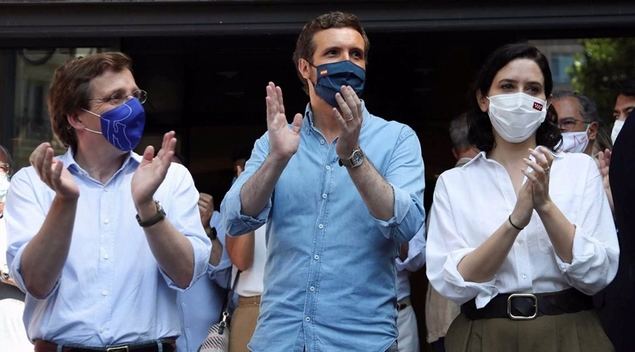 El citado día de la manifestación, los máximos representantes del PP decidieron, antes de iniciar la marcha hacia la Plaza de Colón, pronunciar unas breves palabras frente a los votantes y simpatizantes que se congregaron a las puertas de la antigua oficina de la calle Génova. Los encargados de esos discursos fueron el alcalde de Madrid, José Luis Martínez-Almeida; la Presidenta de la Comunidad de Madrid, Isabel Díaz Ayuso y el Presidente del PP, Pablo Casado. Cabe decir, que como viene siendo la tónica de los últimos meses, la presidenta fue recibida con una fuerte ovación mientras que en el momento de intervenir el líder del PP se escucharon algunos abucheos. Una muestra, para muchos, de que Isabel Díaz Ayuso está quitando protagonismo a Pablo Casado.