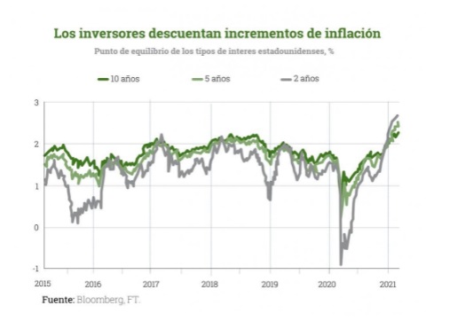 Prueba de ello son los últimos datos de inflación presentados por las diferentes economías. En Estados Unidos, el IPC interanual de mayo avanzó un 5% (dato comparable contra el mismo mes del año anterior), marcando la mayor subida interanual desde agosto de 2008. Por su parte, el IPC subyacente, aquel que excluye los precios de los alimentos y la energía, aumentó un 3,8%. Ambas cifras se encuentran por encima de las previsiones de la Reserva Federal. Lo mismo está sucediendo en Europa, con datos por encima de lo esperado en estos últimos meses, en general en todas las principales economías del continente.