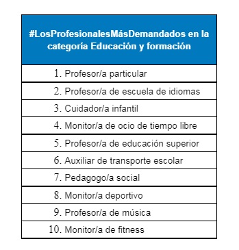 #LosProfesionalesMásDemandados en el sector Educación y formación