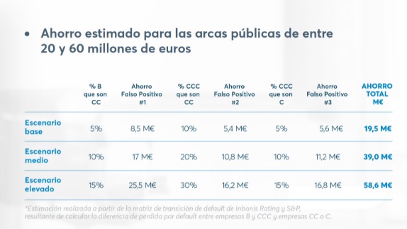 El Fondo de Recapitalización, dotado con 1.000 millones de euros, está concebido como un vehículo de apoyo financiero público de carácter temporal, destinado a restaurar la solvencia de empresas que, aun siendo viables a medio/largo plazo, se han visto golpeadas por pandemia y no consiguen financiación por otras vías. Las calificaciones de INBONIS permitirán a COFIDES descartar, por un lado, a las empresas que pueden financiarse en el mercado y, por otro, a las que presenten un mayor riesgo de entrar en default en el horizonte temporal de amortización de las ayudas (inferior a ocho años), lo que impediría recuperar la cantidad aportada. Siguiendo este criterio, sólo las que empresas con una calificación otorgada por Inbonisde B+ o CCC podrían pasar a la fase de análisis.