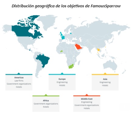 Los investigadores de ESET, firma experta en ciberseguridad, han descubierto un nuevo grupo de ciberespionaje que ataca principalmente a hoteles de todo el mundo, pero también a gobiernos, organizaciones internacionales, empresas enfocadas en la ingeniería y bufetes de abogados. ESET ha bautizado a este grupo como FamousSparrow y cree que ha estado activo desde al menos 2019. Las víctimas de FamousSparrow se encuentran en Europa (Francia, Lituania, Reino Unido), Oriente Medio (Israel, Arabia Saudí), América (Brasil, Canadá, Guatemala), Asia (Taiwán) y África (Burkina Faso). Los objetivos sugieren que la intención de FamousSparrow es el ciberespionaje, y que podría acabar afectando a otros países, entre ellos España. Al revisar los datos de telemetría durante su investigación, los investigadores de ESET descubrieron que FamousSparrow aprovechó las vulnerabilidades de Microsoft Exchange conocidas como ProxyLogon sobre las que ESET informó en marzo de 2021. Esta cadena de vulnerabilidades de ejecución remota de código fue utilizada por más de 10 grupos APT (Advanced Persistent Threat) para tomar el control de servidores de correo electrónico de Exchange en todo el mundo.