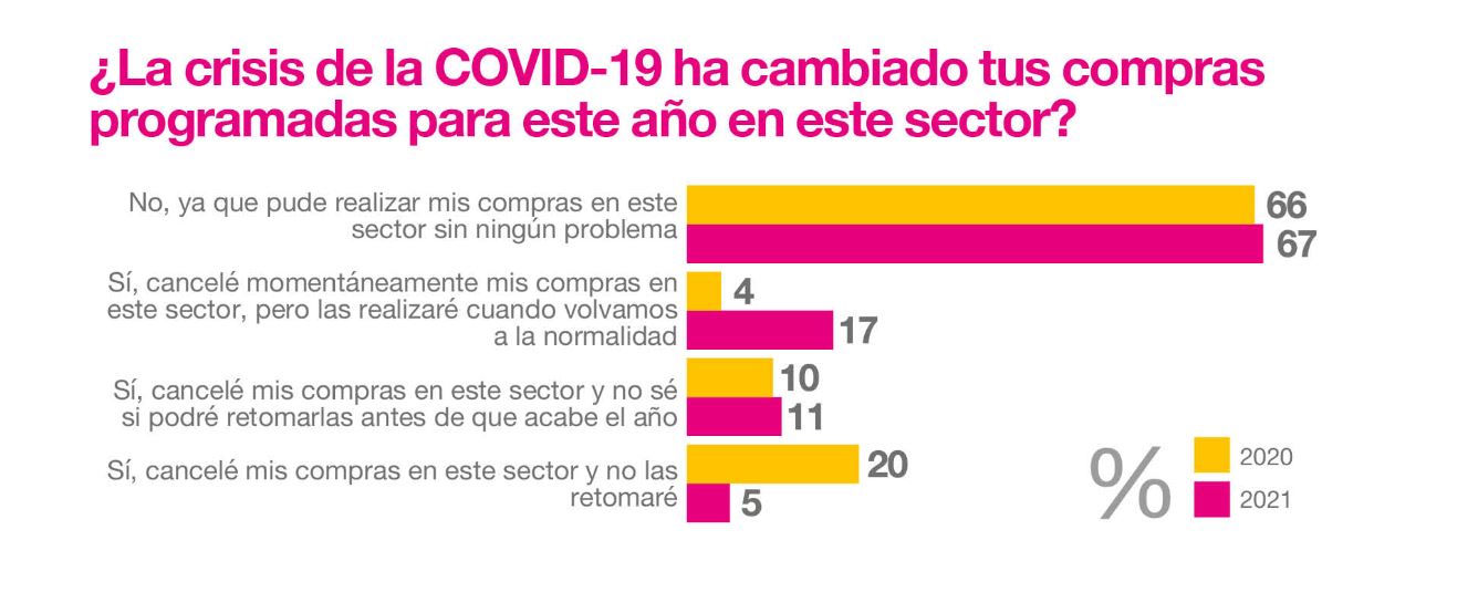 No obstante, un dato positivo es el gran descenso de 15 puntos porcentuales, en los consumidores que afirmaban en 2020 haber cancelado sus compras en este sector por la pandemia y que no las retomarían (20% en 2020 vs 5% en 2021).