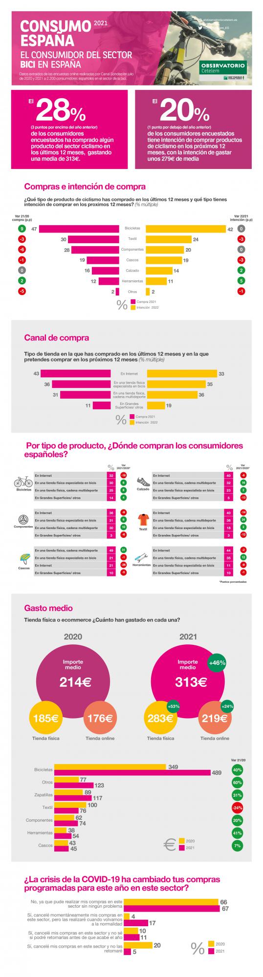Los datos analizados y las reflexiones mostradas en esta edición El consumidor del sector bici en España se han obtenido a partir de la realización de una encuesta online realizada por la empresa Canal Sondeo en julio 2020 y 2021. Tamaño de muestra: 2.200 encuestas.
