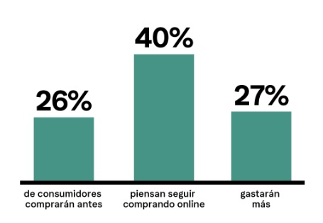 Las compras online son la opción preferida: el 40% de los compradores creen que harán la mayoría de sus compras por internet este año, y el 30% piensan que comprarán tanto en línea como en tiendas físicas.