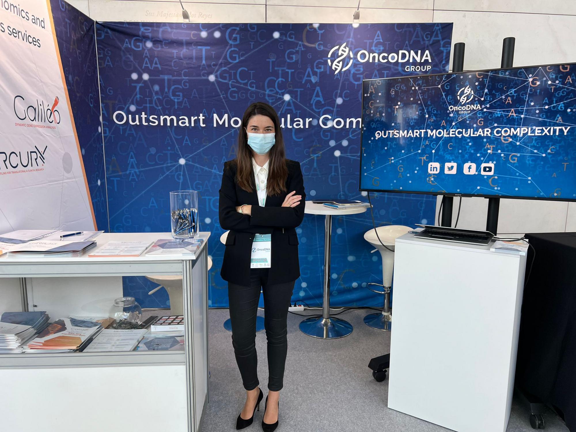 Para ello cuentan con buena parte de su equipo, entre los que está Séverine Martin-Lannerée, responsable de productos de IntegraGen especializada en genómica para oncología, encargada de llevar a cabo estas breves charlas informativas, y Adriana Terrádez, directora de OncoDNA para España y Portugal.