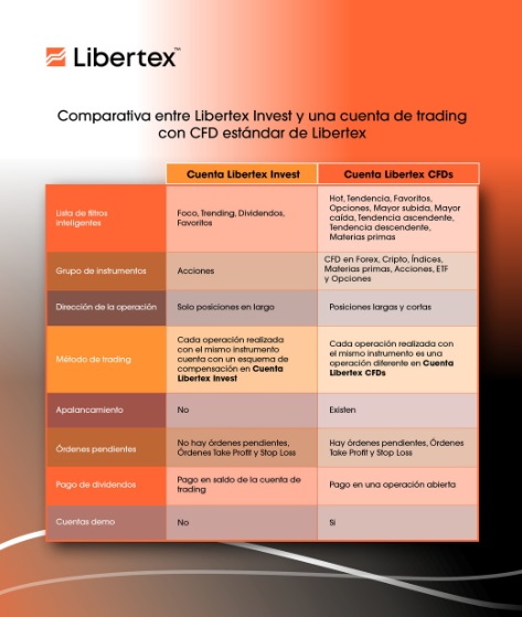 ¿En qué se diferencia Libertex Invest de una cuenta de trading con CFD estándar de Libertex?
