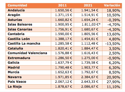 Inforesidencias lleva quince años haciendo seguimiento de los precios en residencias de personas mayores lo que permite hacer estimaciones de la evolución, así es posible saber que el precio de una plaza en una residencia en este territorio en 2011 era de 1.285,58 € y ahora es de 1.113 €. Se ha producido una variación de -173,10 € en 10 años lo que supone un -13,5%. La inflación general durante los últimos 10 años ha sido del 10,9% por lo que el informe de Inforesidencias.com para esta CCAA determina que el sector de las residencias ha sido deflacionista en esta comunidad y su precio medio está por debajo de la media nacional que se sitúa en 1.830 €.