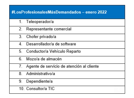 #LosProfesionalesMásDemandados en InfoJobs en enero
